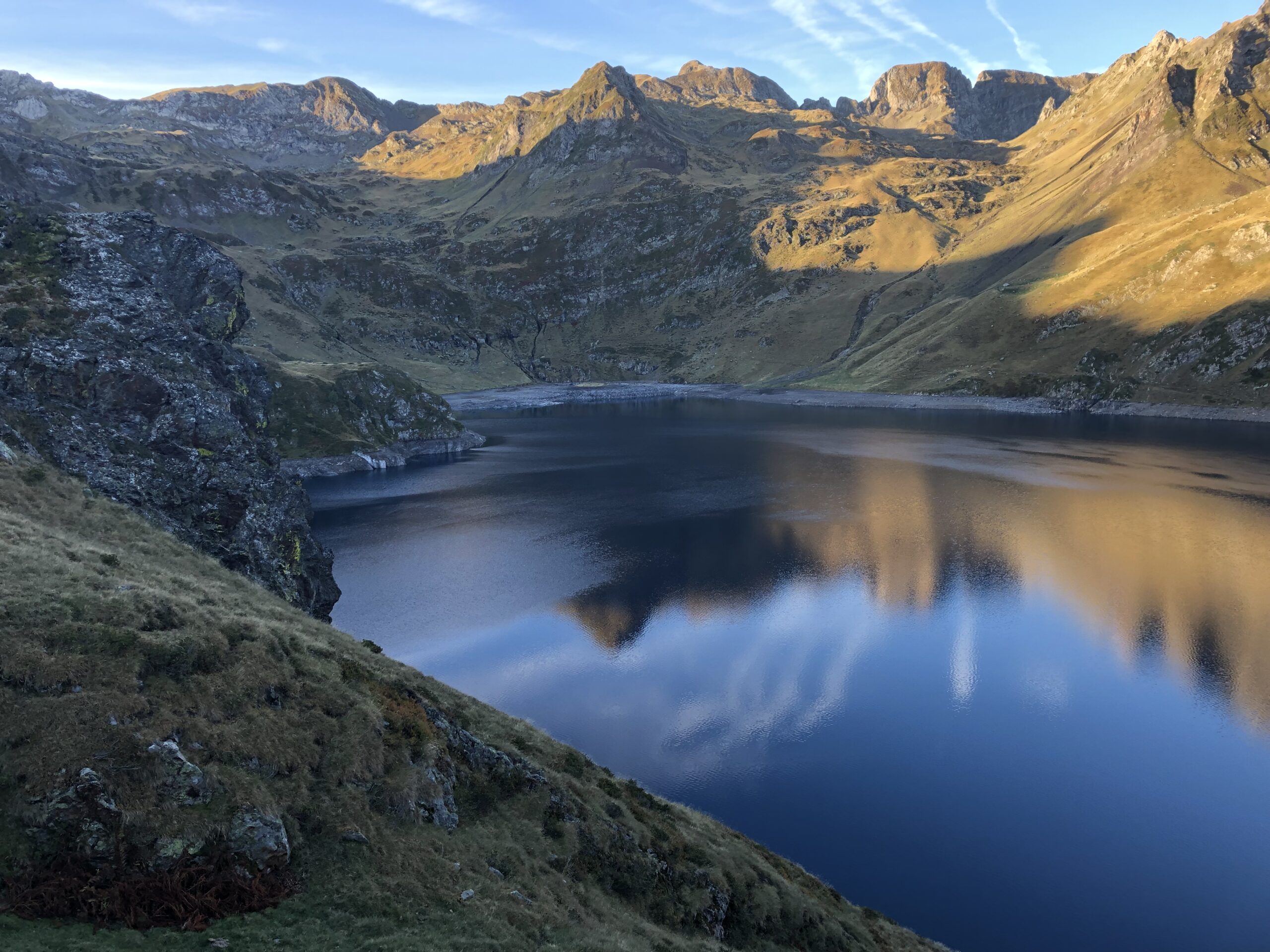 Découverte du secteur du lac Bleu, très joli une fois qu’on a pris un peu hauteur, puis visite solitaire de la crête entre Pic de Merlheu et Pène Blanque entre les autoroutes du pic du Midi et du lac Bleu. Une belle journée automnale avec le brame du cerf en prime.